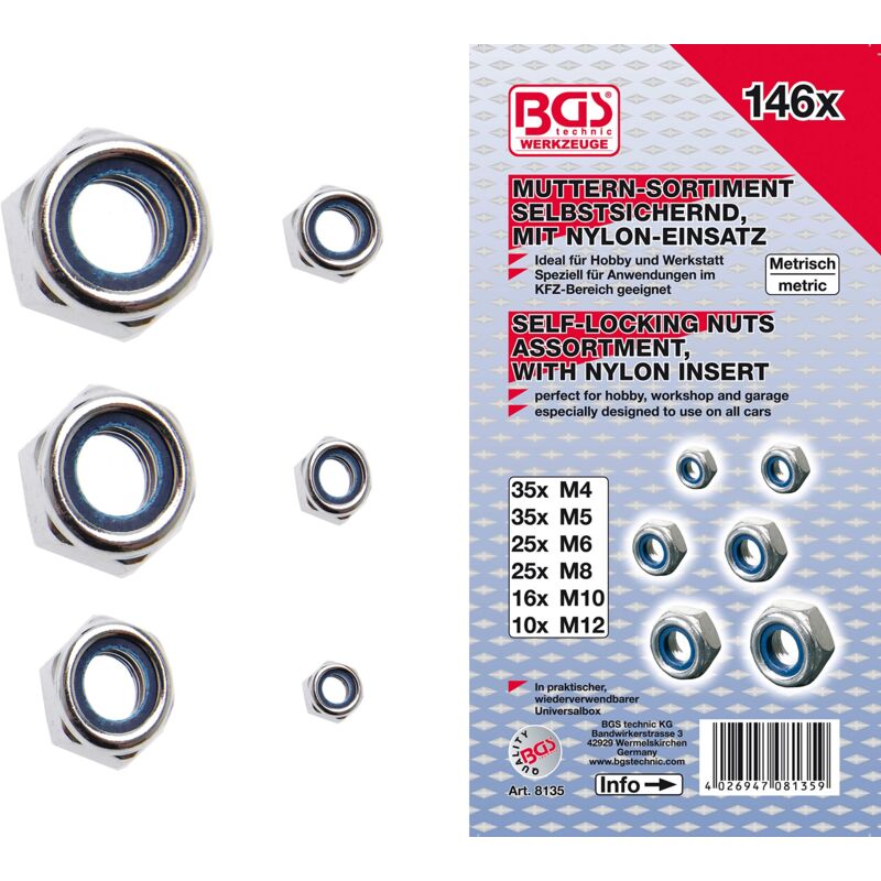 Cromato - Stampa con inserto in nylon - Dimensioni: M4 - 5 - 6 - 8 - 10 - 12 Nel set