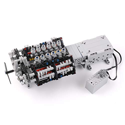 WWEI Technik V12 Motorino Motore, Motore da 2 L, 48 Valvole, Motorino Dinamico MOC-43833, 851 mattoncini compatibili con auto Lego Technic