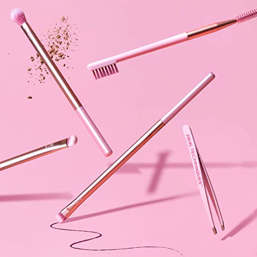 REAL TECHNIQUES Naturally Beautiful Eye Makeup Brush Kit, Professional Eye Brush Set, Soft Bristles, Cosmetic Brushes For Eyeshadow, Eyebrow, Blending, Fan, and Eyelashs, 5 Piece Set, Pink