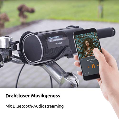 TechniSat DIGITRADIO Bike 1 - Radio per bicicletta DAB+ (FM, alloggiamento idrorepellente IP65, display OLED, streaming audio Bluetooth, staffa per manubrio/telaio, batteria ricaricabile, 2 watt) nero