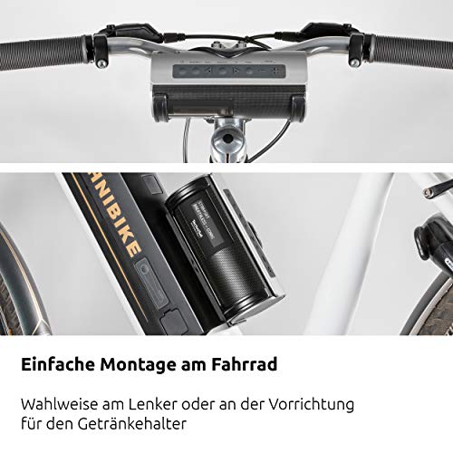 Con supporto universale, con il quale la radio della bici può essere facilmente e saldamente fissata al volante, al telaio o al portabevande e comodamente rimossa quando si riposa