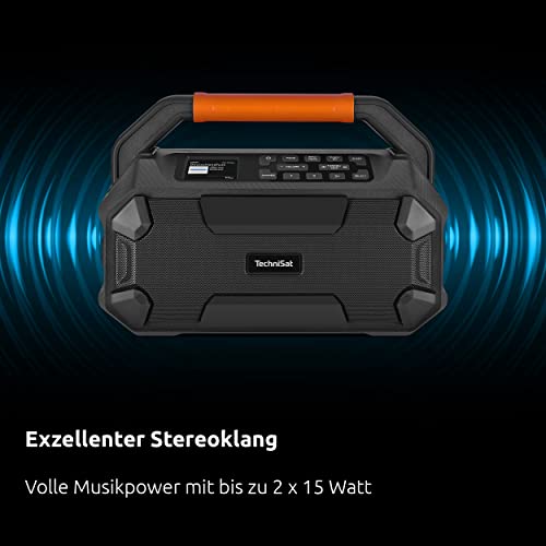 TechniSat DIGITRADIO 231 OD - DAB+ Outdoor Boombox con batteria (DAB/FM, AUX in, Bluetooth, 18 V batteria compatibile con Makita, Bosch Professional, DeWalt, altoparlante stereo da 16 W)