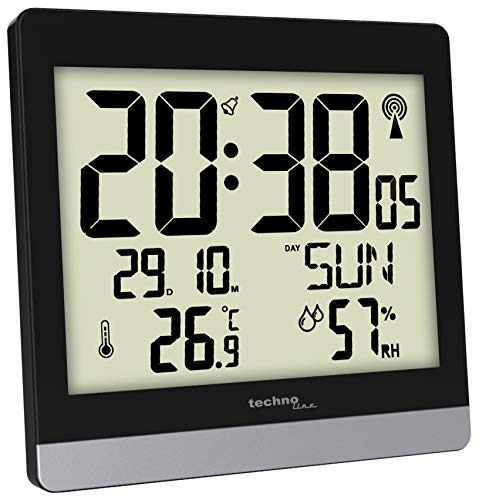 , impostazione automatica dell'ora, un display chiaro, numeri di facile lettura e funzioni aggiuntive come temperatura, umidità, data e allarme con funzione snooze. Con queste ultime funzioni, l'orologio da parete è ideale anche per essere posizionato in camera da letto come sveglia.