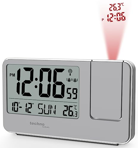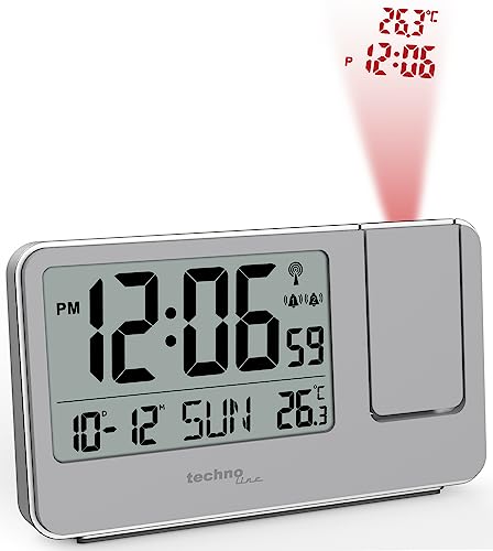 Technoline WT534 Sveglia per proiezione, orologio radio, proiezione di temperatura e ora, argento