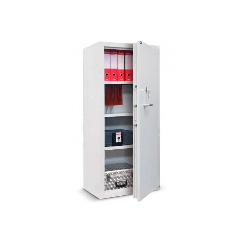La serie Professional prodotta dalla Technomax è( stata realizzata pensando alla sicurezza di una clientela professionale (come ad esempio attività commerciali ed industriali, uffici privati e/o pubblici, studi professionali, scuole, istituti bancari) ma anche per abitazioni per la protezione di denaro, documenti e oggetti preziosi. CARATTERISTICHE TECNICHE - Struttura monoblocco in lamiera dbacciaio dello spessore di 3 mm. - Porta in lamiera dbacciaio dello spessore di 3 mm. con pannellatura interna copri congegni di chiusura e sagomata sui 3 lati. - Robuste cerniere interne, che consentono lbapertura della porta a 110B0 e realizzate in modo da consentire lo smontaggio della porta per facilitare il trasporto dellbarmadio ai piani superiori. - Sistema di chiusura, azionato da maniglia posta sullbanta destra, realizzato con crociera a 3 espansioni azionante i 5 catenacci rettangolari (3 frontali mm. 70x10 + 2 laterali mm. 30x10). - Sul corpo dellbarmadio, lato cardini, è( prevista una