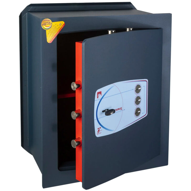 Cassaforte a muro Technomax della serie “Gold Diplo” modello GD/7L Serratura di alta sicurezza di ultima generazione, con 8 leve asimmetriche ed indipendenti, certificata UNI EN 1300. Si basa sull'utilizzo di nuove leve antipicking oscillanti e mentonnet a profilo speciale che oppongono una eccezionale resistenza agli attacchi portati utilizzando gli ultimi sofisticati sistemi di manipolazione con l'uso di speciali grimaldelli Chiave a doppia mappa con profilo speciale duplicabile con carta di proprietà, per impedire la duplicazione non autorizzata delle chiavi Blocco combinatore a 3 volantini incassati da 20 posizioni ciascuno Estrazione della chiave impossibile a catenacci rientrati Catenacci in acciaio nichelato, girevoli, del Ø di 22 mm Protezione al meccanismo della serratura con piastra in acciaio al manganese Speciali battute della porta per una eccezionale resistenza ai tentativi di effrazione con l'uso di una mazza Robuste saldature interne realizzate con sistema robotizzato