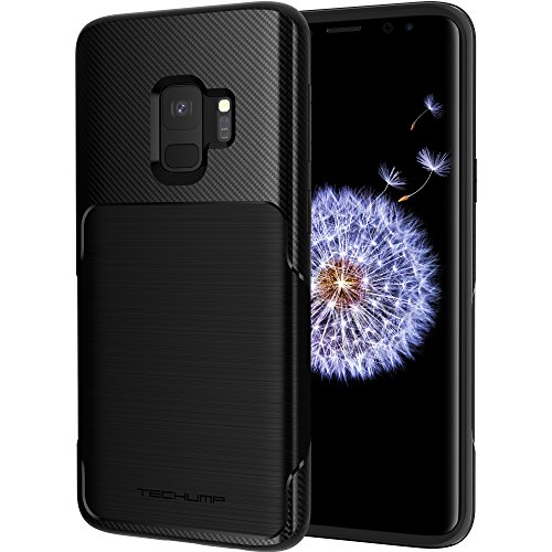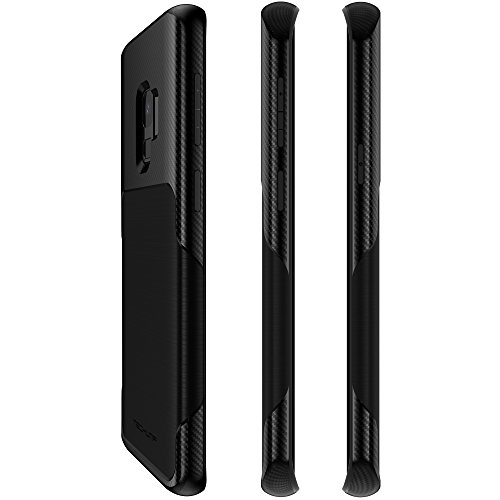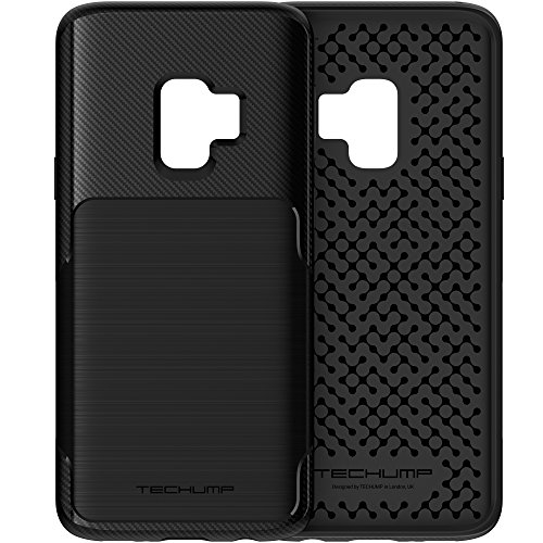 Techump Impactio Custodia Elegante e Flessibile con Elementi in Fibre di Carbonio e Metallo per Galaxy S9 - Nero