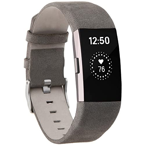 Techwills Cinturino di ricambio in vera pelle per Fitbit Charge 2, da uomo e da donna (grigio satinato)