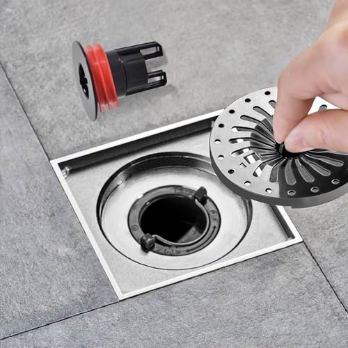 【Facile da usare e da pulire】 Lo scarico a pavimento è un comodo nucleo di scarico a pavimento ermetico e deodorante. È adatto per tubi con un diametro di scarico di 39 - 45 mm e una profondità maggiore di 50 mm. Collegalo allo scarico ed è pronto per l'uso. Quando lo scarico a pavimento deve essere pulito, basta sollevarlo e versare i residui di capelli filtrati ecc. per pulirlo.