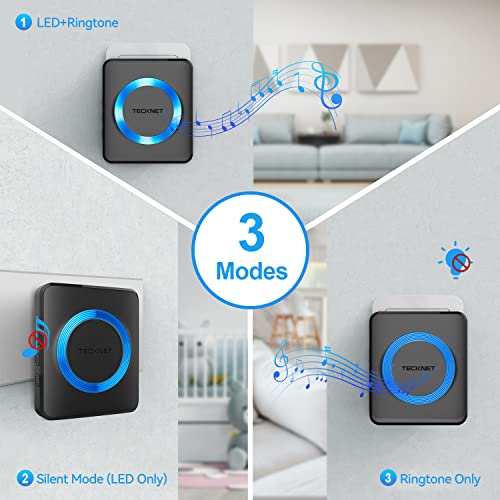 TECKNET Campanello Senza Fili, Impermeabile, a Doppia Parete, Senza Fili, con Portata di 400 m, 38 camini, Volume a 4 Livelli e Luce Blu, Ideale per Campanello d'ingresso