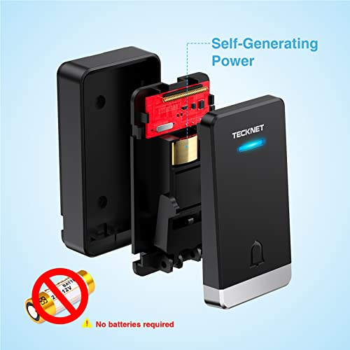 TECKNET Campanello Wireless, Campanello 400M Campanello elettronico Impermeabile IP65, Campanello con Funzione di Ricarica e Luce LED, 32 Melodie a 5 Livelli di Volume - Nero