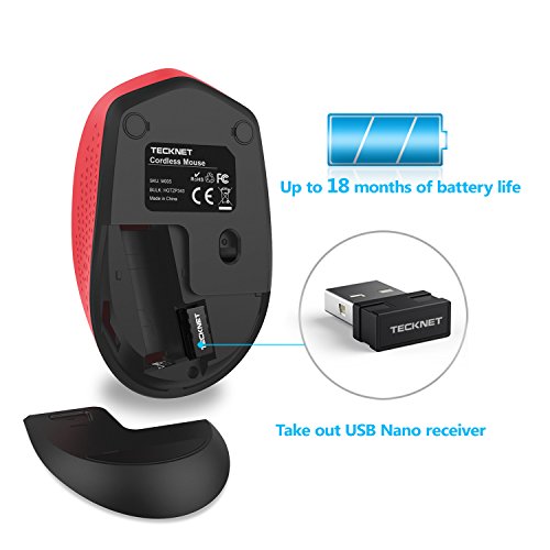 TECKNET Omni Mini Mouse wireless 2.4G Wireless Wireless Mouse, livello DPI regolabile, durata della batteria, 18 mesi di durata della batteria, Nano Emfender