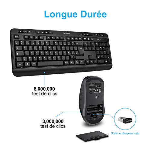 TeckNet - Tastiera e mouse senza fili, 2,4 ghz nero nero