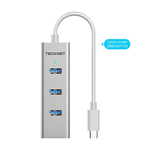 TECKNET USB C HUB, Hub USB-C a 4 Porte USB 3.0 per i dispositivi USB Type-C Inclusi Il Nuovo MacBook, ChromeBook Pixel e Altri (Alluminio Argentato)