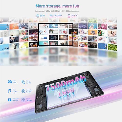 【16GB RAM (8+8)+256GB ROM + 1TB Extended Mass Storage】Questo tablet ha 8GB LPDDR4X RAM e supporta fino a 8GB di espansione della memoria virtuale, fino a 16GB di RAM. Questo tablet Android ha un'enorme memoria ROM integrata da 256 GB (TF1TB venduto separatamente), e hai molti film, giochi e musica per intrattenerti. Combinando l'audio Sweet 4 speaker, questo tablet offre la migliore qualità audio.