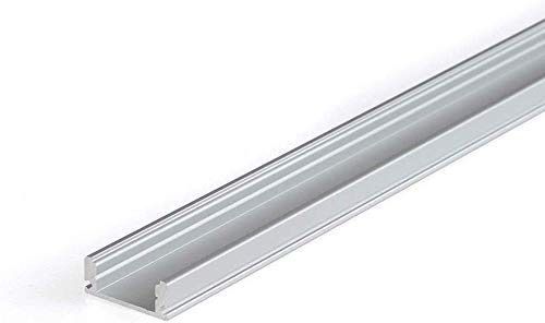 Tecno&Led® -10 METRI 5x2 Profilo Alluminio Piatto CC-32 per strip LED (Lunghezza: 2m - Copertura: Opaca)