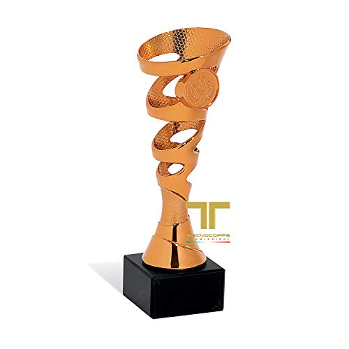 Tecnocoppe Coppa h 18,50 cm ABS bronzato con Base in Marmo Nero. Targhetta Personalizzata Omaggio Premio Riconoscimento Sportivo