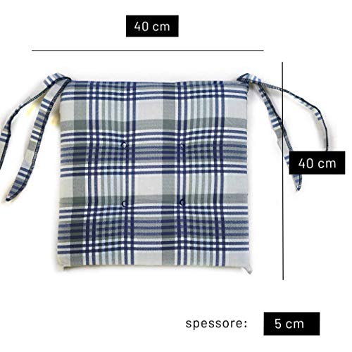 TECNOCUCI Cuscini per Sedie - Set da 4 Cuscini - 100% Made in Italy - Ideali per interni (cucina, sala da pranzo) ed esterni (cortile, giardino) - Disponibili diverse fantasie