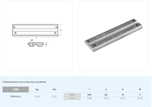 1 x 00816AL - Barra per trim In alluminio