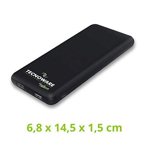 Tecnoware 10.000 mAh Caricabatterie Portatile con 2 Porte USB, Powerbank, per Smartphone e Tablet (iPhone e Samsung), Ricarica Tramite Micro USB o USB-C, con Indicatore Batteria