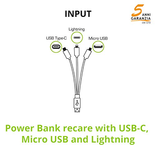 INGRESSO RICARICA MULTISTANDARD: Il Powerbank può essere ricaricato tramite USB-C o Micro USB