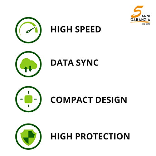 Elevata velocità di trasmissione dati, alta resistenza all'abrasione e rotture accidentali, design compatto con superficie Soft Touch.