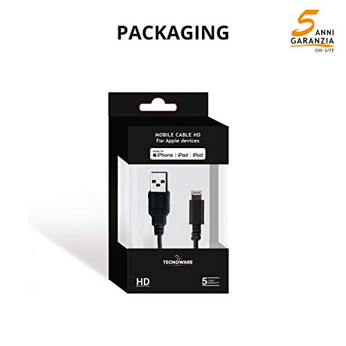 Tecnoware Cavo Lightning per iPhone, iPad e iPod - per Sincronizzazione dei Dati e Ricarica - Lunghezza 150 cm