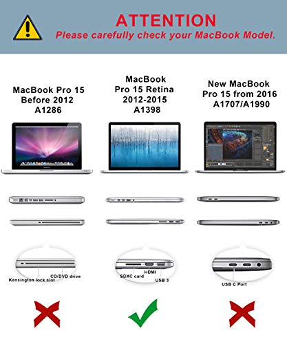 Tecool Cover MacBook Pro 15 pollici, Ultra Sottile Plastica Case Rigida Copertina Custodia per MacBook Pro 15.4 con Retina Display Modello: A1398 - Nero