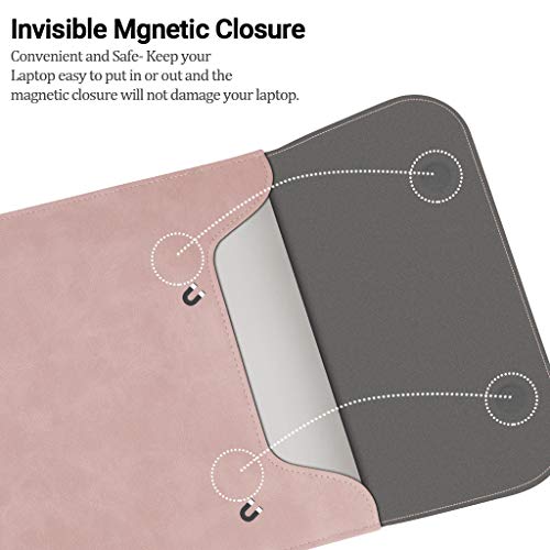 [Materiale]: l'esterno della borsa per laptop da 13 pollici è realizzato in finta pelle scamosciata idrorepellente e resistente ai graffi, che è facile da pulire e si asciuga rapidamente. La copertura magnetica invisibile impedisce al laptop / macbook di scivolare fuori dalla borsa del laptop e non danneggia il macbook / laptop.