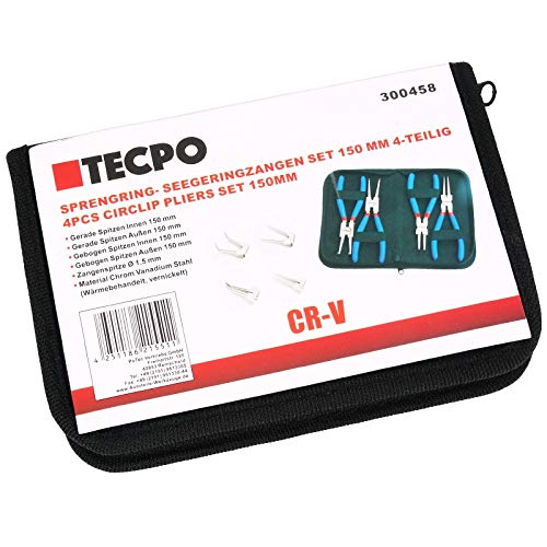 TECPO 300458 - Set di pinze per anelli elastici in acciaio al cromo vanadio, 150 mm