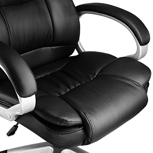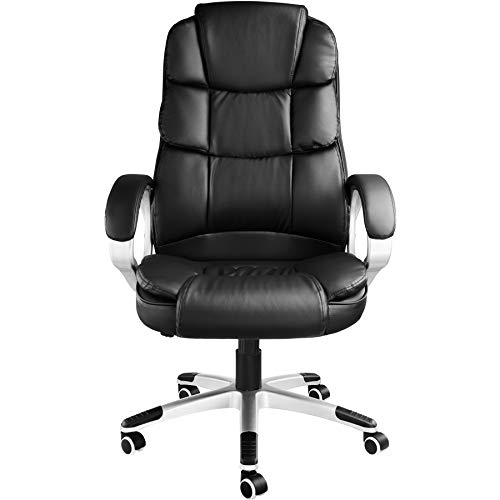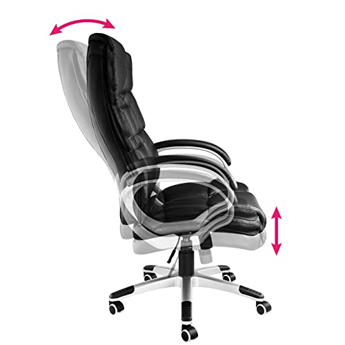 TecTake 403238 Poltrona da Ufficio, Ergonomica, Similpelle, Sedia Girevole con Rotelle, Meccanismo Basculante, Nero