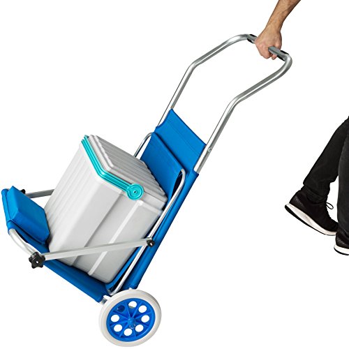 Il super leggero lettino con rotelle può essere tirato senza fatica e, grazie alle grandi ruote in gomma, non affonda nella sabbia // Peso: ca. 4,3 kg // Diametro ruota: ca. 22,5 cm // Diametro telaio tubolare: ca. 2,5 cm.
