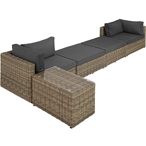 TecTake 800694 Doppia Chaise-Longue Deluxe Rattan, Set per Giardino, Alluminio, Tavolo con Piano in Vetro, Componibile con Versatilità, Cuscini - disponibile in diversi Colori (Naturale | No. 403168)