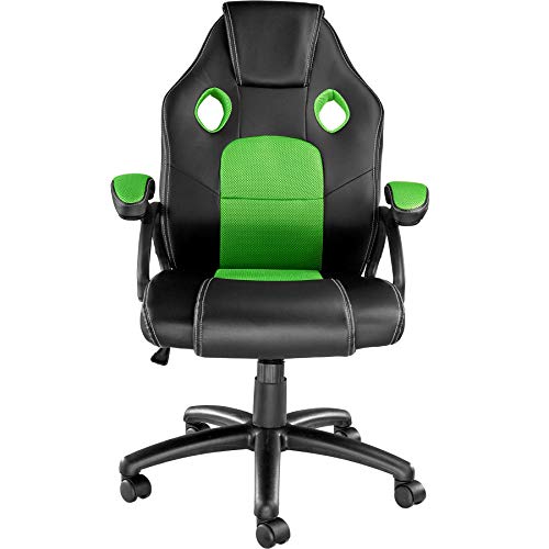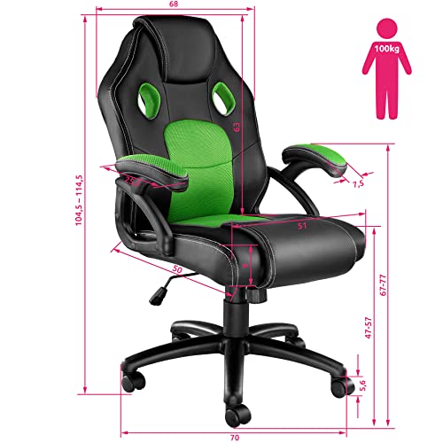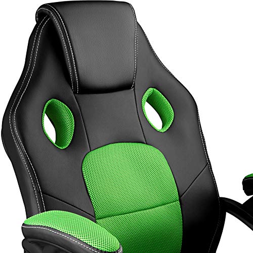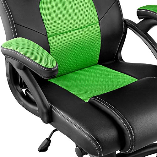 TecTake 800770 Sedia da Ufficio, Poltrona da Gioco, PC Direttore Scrivania, Ergonomica, Altezza Regolabile, 5 Rotelle Doppie, PVC -Disponibile in Diversi Colori (Nero-Verde | No. 403455)