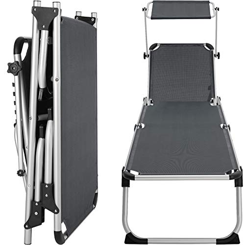 Tectake 800812 Sdraio da Spiaggia, Schienale Regolabile in 6 Posizioni, Parasole, Pieghevole e Trasportabile, Lettino Prendisole, Pratiche Maniglie (Grigio)
