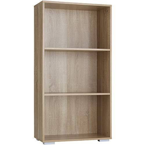 TecTake 800841 Scaffale per Libri con 3x Ripiani, Arredamento da Ufficio, Librerie Verticale, Costruzione Stabile e Sicura, Piastra MDF, Piedi in Plastica (Quercia)