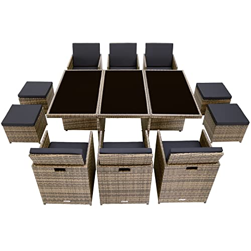 TecTake 800855 Set di Mobili da Giardino Poli Rattan, Alluminio Arredamento Set 6X Sedie 1x Tavolo 4X Sgabelli, Involucro Protettivo, Viti in Acciaio Inox, Nuovo (Naturale)