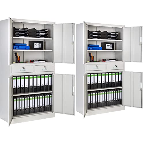 TecTake 801025 2x Armadio portadocumenti con 2 cassetti, Ripiani regolabili in altezza, 2 vani armadio con 2 o 3 scomparti (grigio)
