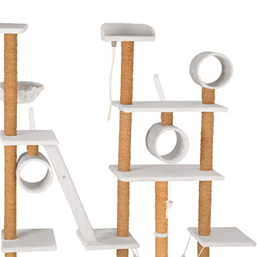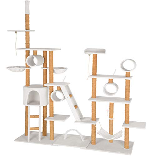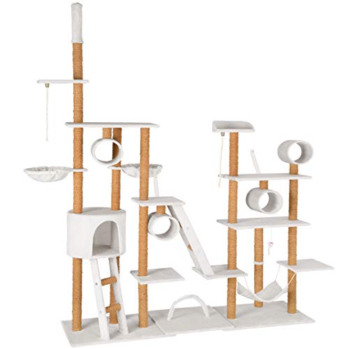 TecTake Albero tiragraffi per gatti | 4 cilindri | 2 cuccette | 218 x 70 x 234 - 261 cm - disponibile in diversi colori - (Bianco | No. 402744)