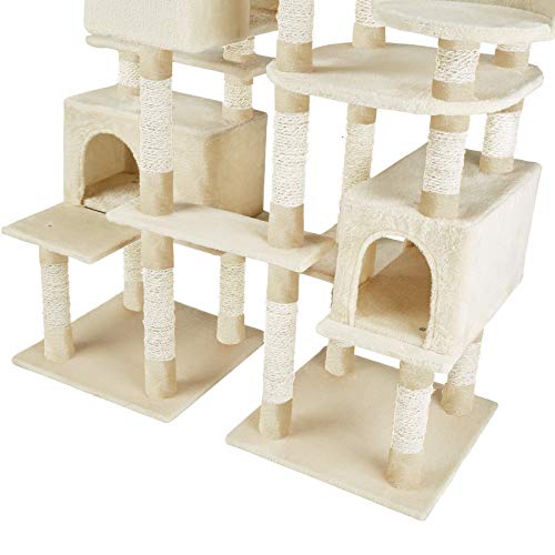 TecTake Albero tiragraffi per gatto gatti gioco XXL | 214cm | 4 piattaforme da cui osservare | 4 confortevoli casette - diversi colori - (beige | 402805)