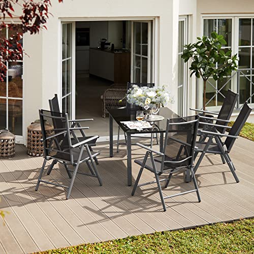 TecTake Alluminio set mobili da giardino 6+1 tavolo sedie pieghevole arredo esterno - disponibile in diversi colori - (Grigio argento | No. 402167)