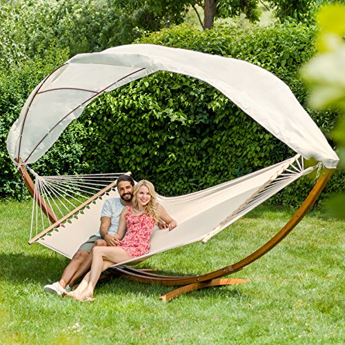 TecTake Amaca Matrimoniale XXL Legno di Pino con Supporto Telaio con Copertura Sdraio AUTOPORTANTE