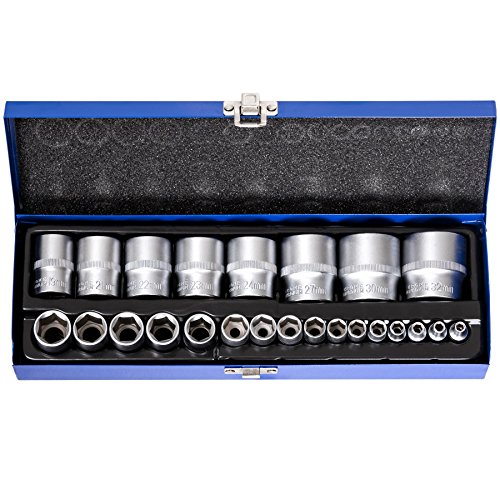 Questo ampio set di chiavi a bussola da 24 pezzi di TecTake è ideale per lavori di avvitatura su auto, moto e biciclette.