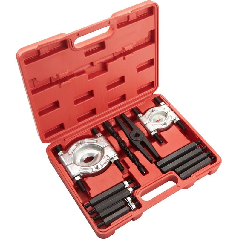 Con questo set di utensili si possono disinserire senza problemi cuscinetti, rotori, cilindri e altri componenti bloccati. Adatto per officine professionali e meccanici per hobby. Caratteristiche utensile di alta qualità pratica valigetta con cavità per alloggiare l'utensile ideale per molteplici usi Colore: rosso Dati tecnici 1 estrattore da 160 mm con foro filettato per la barra di espulsione e due fessure longitudinali da 60 mm 1 barra filettata di espulsione da 180 mm 1 distanziatore: distanza tra le barre filettate 62 mm, apertura fino a 62 mm 1 distanziatori: distanza tra le barre filettate 92 mm, apertura fino 52 mm 8 prolunghe e adattatori da 60, 80, 90 e 110 mm dimensioni valigetta (LxLxH): 34 x 26 x 6,5 cm peso totale: 4,9 kg materiale: metallo La fornitura comprende 1 set di estrattori e distanziatori in pratica valigetta istruzioni I clienti hanno cercato anche: estrattore cuscinetti