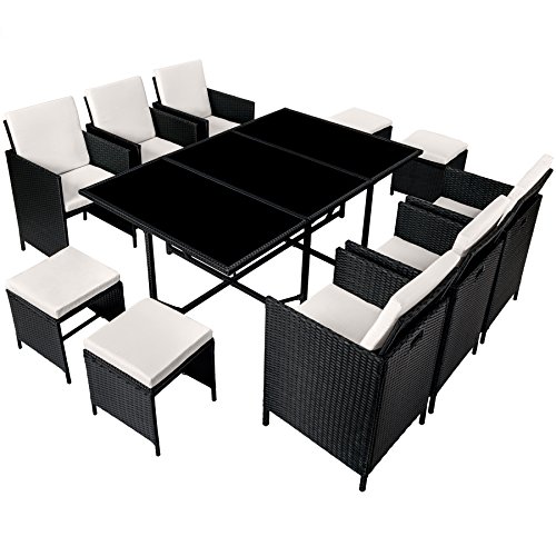TecTake SET DI MOBILI DA GIARDINO POLI RATTAN ARREDAMENTO SET 6 SEDIE + TAVOLO +4 SGABELLI + INVOLUCRO PROTETTIVO | VITI IN ACCIAIO INOX - disponibile in diversi colori - (Nero | No. 402097)