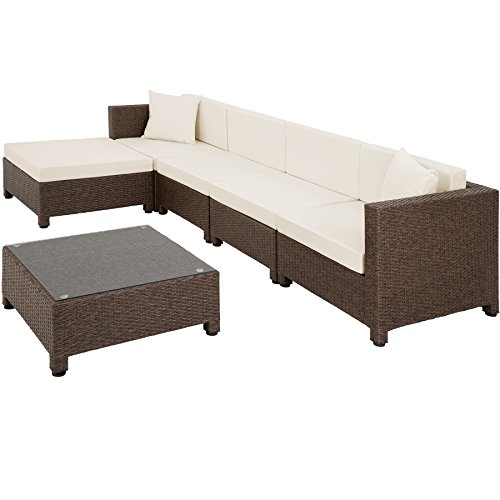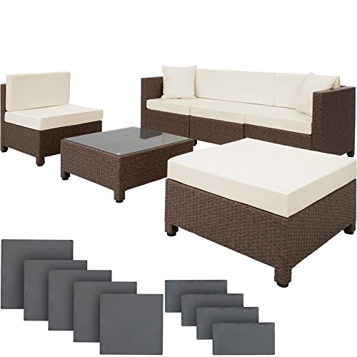 TecTake SET DI MOBILI RATTAN ARREDAMENTO GIARDINO SET COMPLETO + 2 set di rivestimenti per i cuscini per poter effettuare il ricambio - disponibile in diversi colori - (Marrone antico)