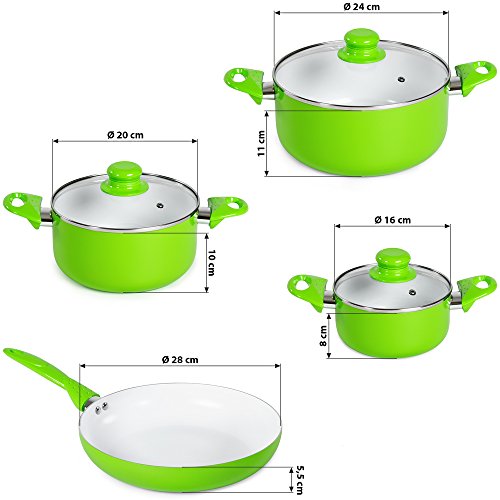 TecTake Set di pentole da 8 pezzi batteria padelle in ceramica cucina - disponibile in diversi colori - (verde | no. 401195)