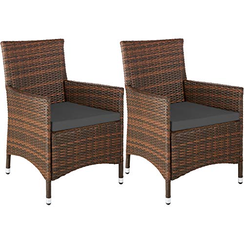 TecTake 2 Pezzi Sedie da esterno Sedia da Giardino poli rattan telaio in alluminio + 2 Set di rivestimenti per cuscini, viti in acciaio inox - disponibile in diversi colori - (Nero/Marrone)