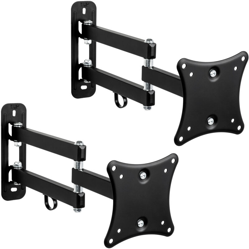 Staffa TV adatta per schermi piatti (TV o anche schermi computer) da 10 - 24 pollici o 25 - 61 cm (verifica il passo dei fori del tuo televisore). L'inclinazione di questo braccio per TV ti consente di montare la TV leggermente più in alto. Inoltre, il supporto è girevole che ti permette di cambiare l'angolo dello schermo a seconda delle tue esigenze. Niente più riflessi della luce solare sulla tua TV! Ottimizza la visione e goditi la prima serata con questa staffa TV. Caratteristiche Staffa TV inclinabile e girevole Alta stabilità fino a 20 kg Con supporto per cavi Colore: nero Dati tecnici Adatto per Vesa: 75 x 75 e 100 x 100 Adatto per un passo dei fori da: 75 x 75, 100 x 100 Distanza dalla parete: min. 5,1 cm, max. 38,1 cm Inclinabile: 2° verso l'alto e 12° verso il basso Materiale: acciaio Carico massimo ammissibile: 20 kg Peso per ogni supporto da parete: ca. 1,2 kg La fornitura comprende 2 supporti da parete per TV ampio kit di materiali per il montaggio Istruzioni di montaggio