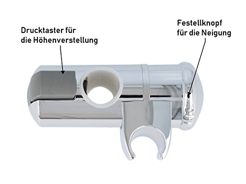Particolarmente adatto per aste il cui tubo è vicino alla parete posteriore. Con questo cursore il soffione si trova davanti al tubo, così il tubo flessibile della doccia non deve piegarsi troppo né sopportare troppa pressione.